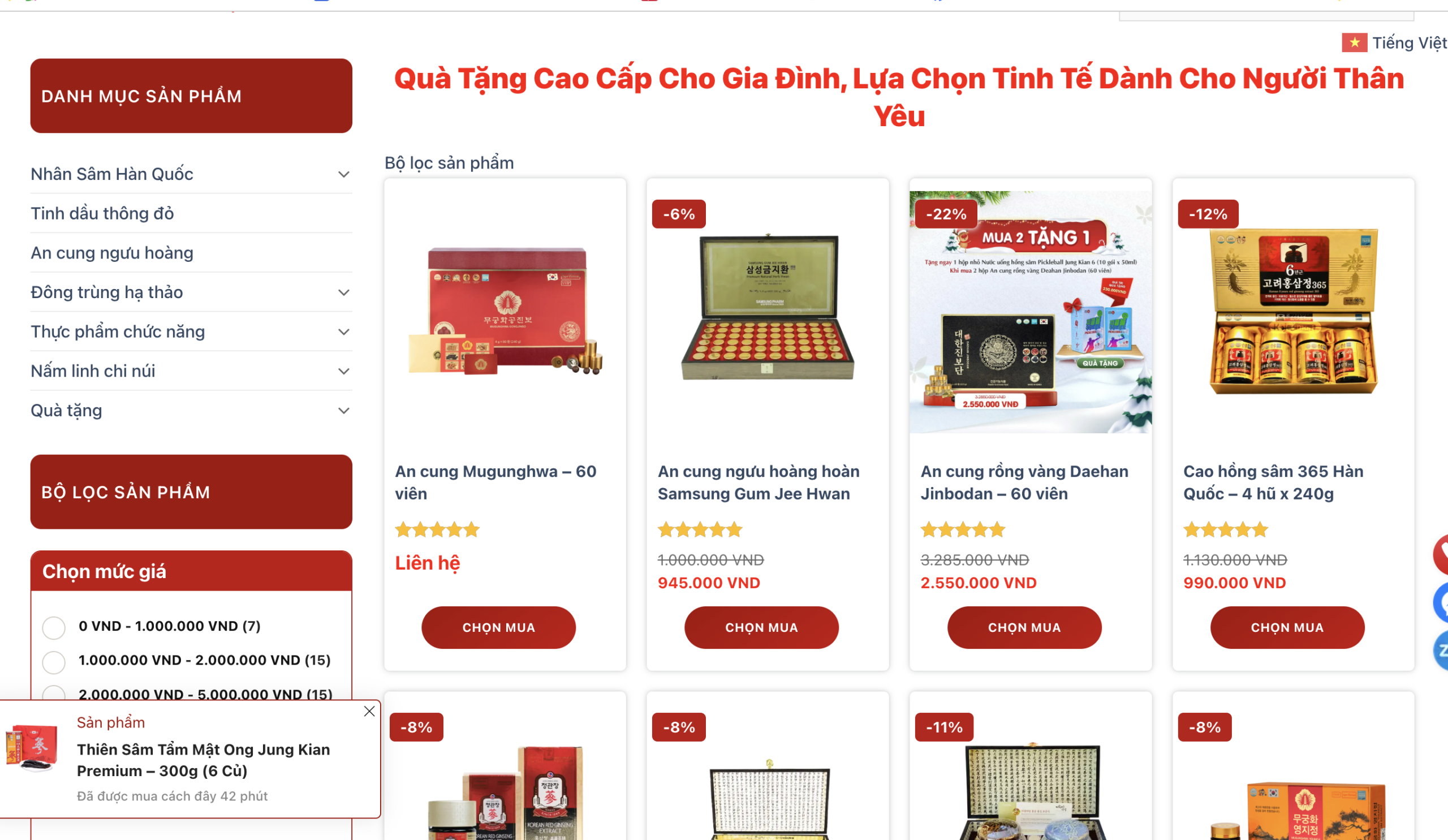 - Thực phẩm chức năng cao cấp: Tinh dầu thông đỏ, An cung ngưu hoàng hoàn, các sản phẩm bổ gan, bổ xương khớp…